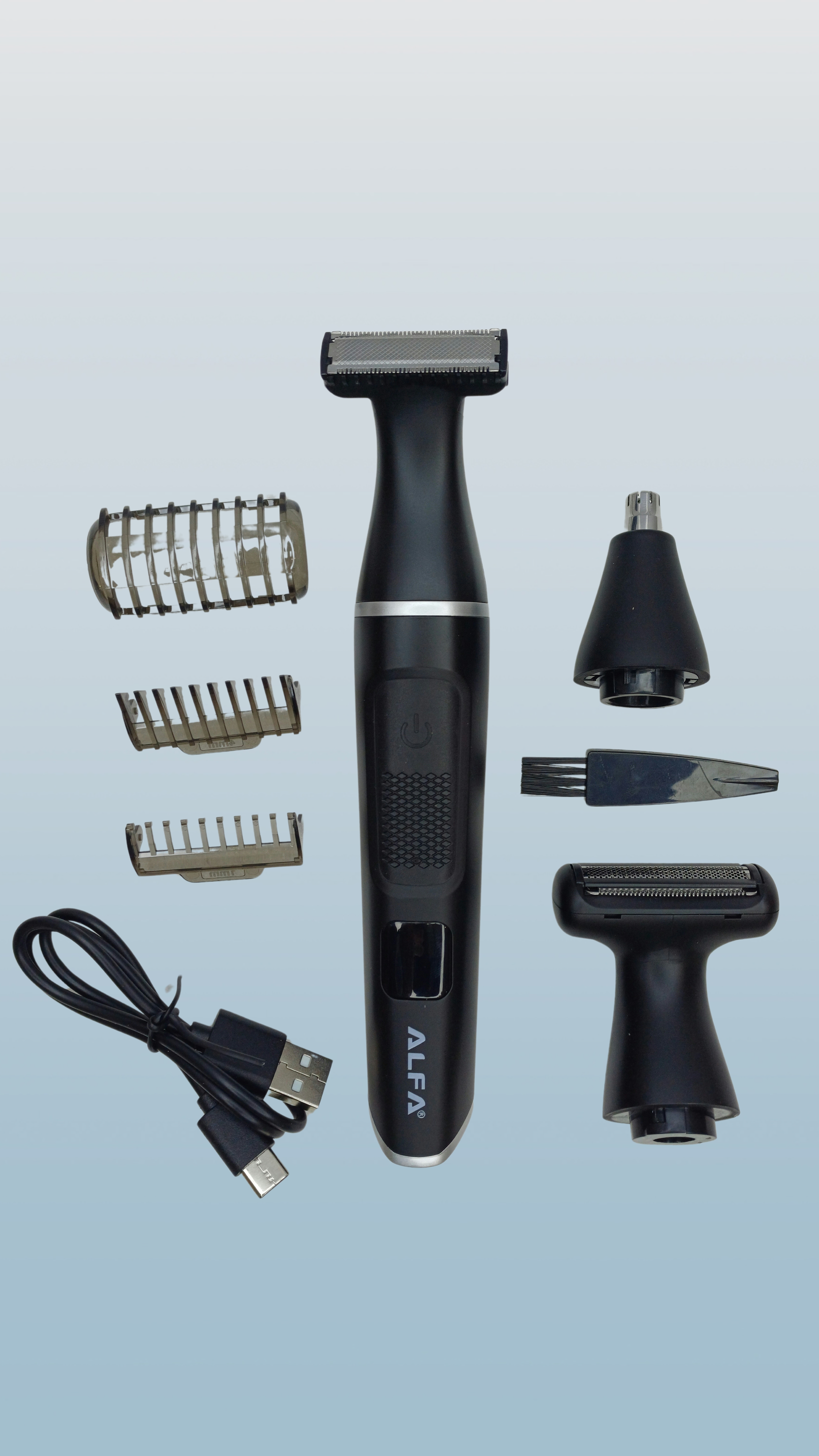 سه عدد سری جدا برای اصلاح موی بینی ریش و بدن- کابل شارژ تایپC -برس تمیز کننده- سه عدد شانه اصلاح
