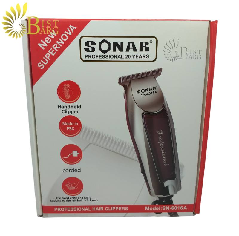 ماشین اصلاح SONAR SN-6016 با طراحی زیبا به رنگ نقره ای زرشکی و ظاهری شبیه ماشین اصلاح وال دیتیلر برای افراد خوش سلیقه و هدیه دادن می تواند گزینه مناسبی باشد. از ویژگی های ظاهری خوب این مدل می توان به بدنه مستحکم، خوش فرم بودن، اندازه جمع و جور، وزن مناسب و حلقه آویز اشاره کرد.