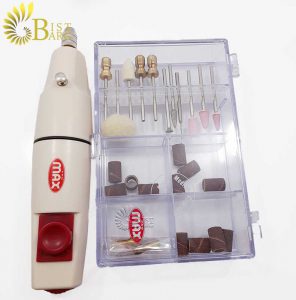 سه عدد ابزار سنگ، دو عدد ابزار فلزی، یک عدد مته نیم میلی متری، دو عدد پولیش، سه عدد میله سنباده، سه عدد نگه دارنده ابزار و ۱۲ عدد کاغذ سنباده جهت رفع عیوب و زیباسازی ناخن ها استفاده می شوند و نتایج شگرفی را به ارمغان می آورند.