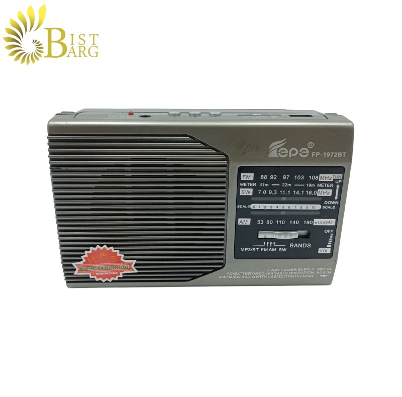 اگر انتظارات شما از یک رادیو تنها پخش اخبار و مسابقات ورزشی نیست و خواهان شنیدن آهنگ های مورد علاقه خود از طریق آن با اتصال به دیگر دستگاه ها هستید، رادیو Fepe مدل FP-1972BT ساخت چین را به شما معرفی می کنیم.