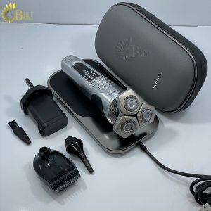سری تریمر برای کوتاه کردن و تنظیم خط ریش و خط گردن و سری موزن گوش و بینی به همراه دارد.