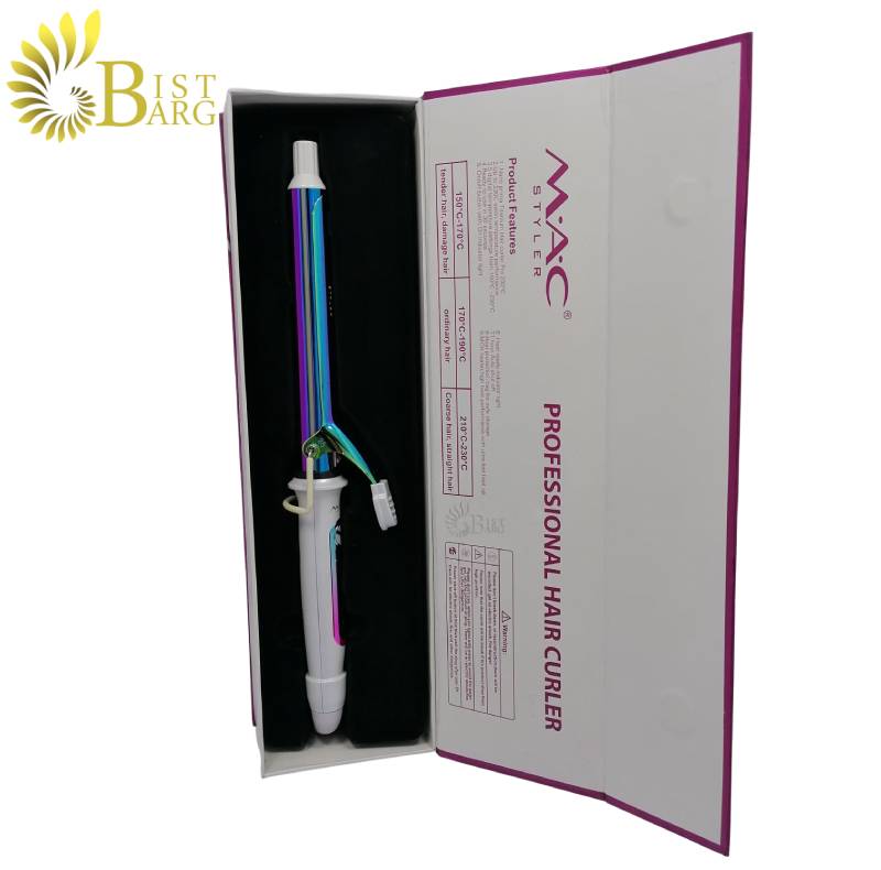 فرکننده مو مک استایلر مدل MAC MC-5720 ظاهری بسیار شیک و متمایز دارد. بدنه ی آن به رنگ سفید بوده و لوله حرارتی براق آن تمام هفت رنگ را تداعی می کند. این دستگاه فوق العاده مجهز به صفحات سرامیکی 25 میلیمتری است تا به شما این امکان را می دهد که بدون هیچ نگرانی موهای خود را آنطور که می خواهید حالت دهید. همچنین سیم برق 1.8 متری آن چرخان بوده که این ویژگی کار با این فرکننده مو را راحت کرده است.