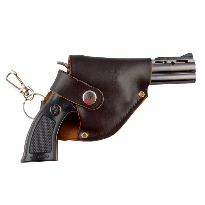 فندک طرح کلت فلزی دارای یک کیف چرمی قابل اتصال به کمربند است که حمل و دسترسی به آن در سفر را آسان تر کرده است.