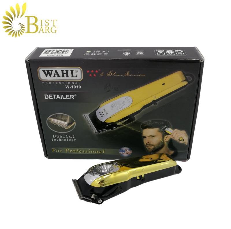 ماشین اصلاح وال مدل Wahl W-1919 دارای طراحی ارگونومیک بوده و ظرافت و راحتی را یکجا به کاربران خود هدیه داده است. رنگ بدنه ی فلزی آن طلایی بوده و بر روی آن دکمه خاموش و روشن تعبیه شده است. وزن این محصول معادل 408 گرم است.